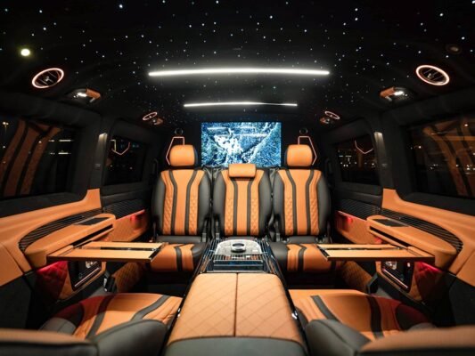 Moreover, we utilize hand-selected materials such as Genuine NAPPA leather and Alcantara, alongside advanced features like Smart TVs, wireless routers, and a smart vehicle control system. As a result, we ensure that your Vito Luxury Van reflects the pinnacle of luxury. Whether you are aiming to enhance your business travel experience with a sophisticated mobile office setup or are looking to create a lavish, relaxing space for personal use, our team of expert designers and craftsmen is unequivocally dedicated to exceeding your expectations![]()
