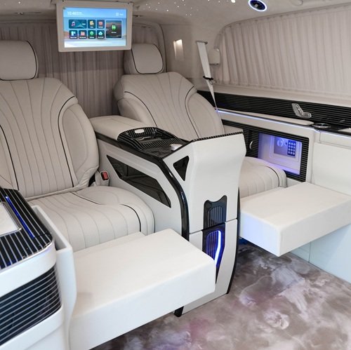 At SMD, we understand the importance of combining opulence with state-of-the-art technology. Our bespoke interior designs feature premium materials such as Genuine NAPPA leather and Alcantara, ensuring a luxurious yet durable finish. Cutting-edge amenities like Smart TVs, wireless routers, and a fully integrated smart vehicle control system make every journey a seamless blend of comfort and convenience.![]()